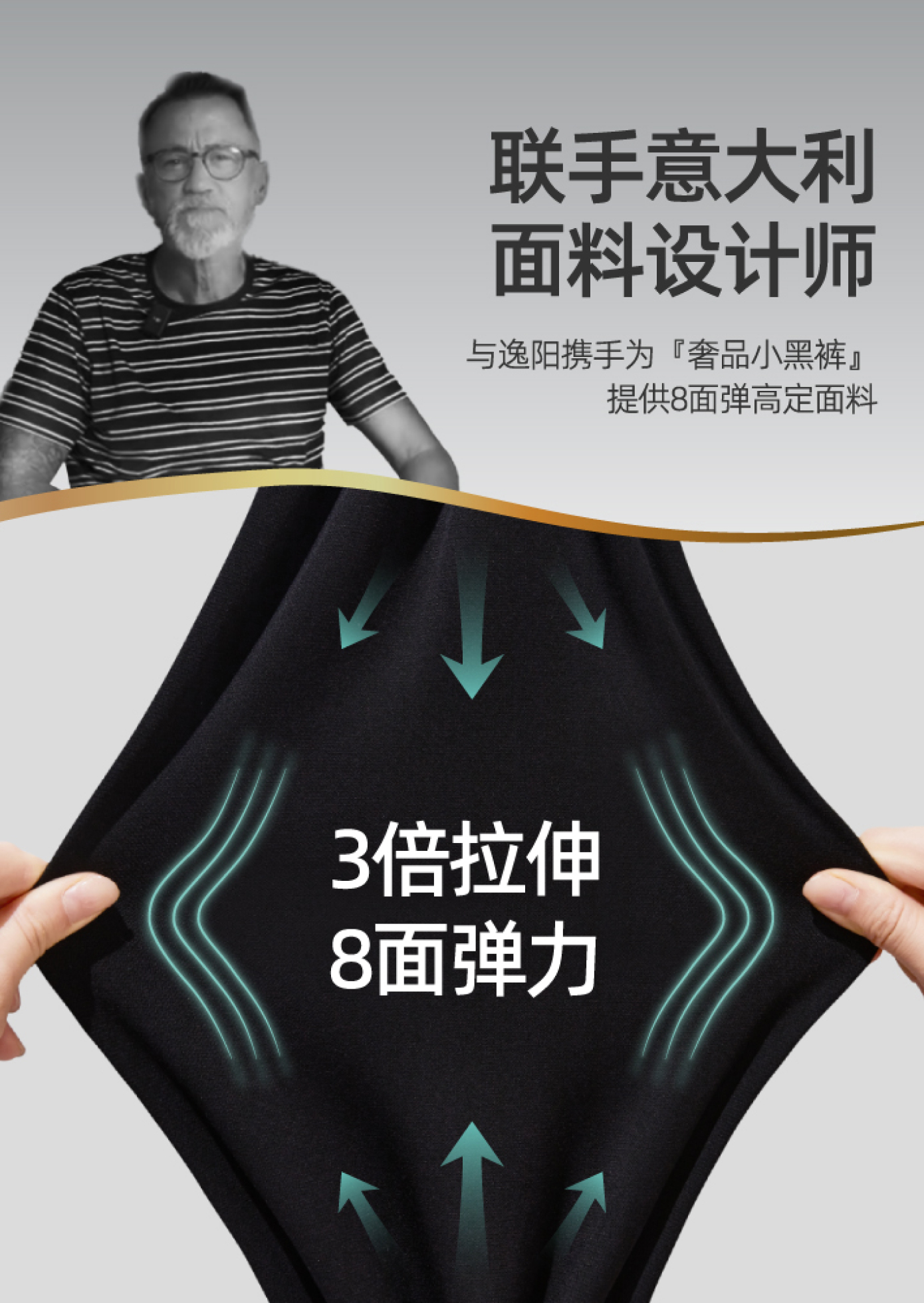 逸陽小黑褲精細調校版型,做到臀線提升3cm,臀形提升15度。同時小黑褲聯合奢牌御用面料大師,打造專屬8面彈,360度高彈面料,拉伸率高達普通面料3倍。運用僅奢品高定成衣才會使用的 工藝,不僅舒適,更是體面。